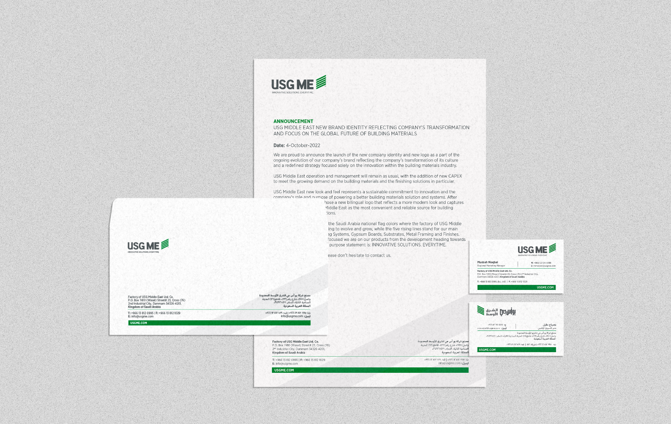 USG ME new brand identity reflecting company's transformation and focus on the global future of building materials